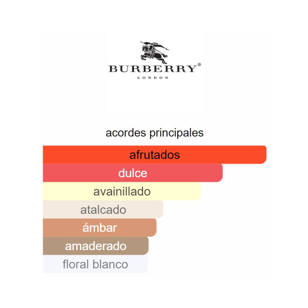 Burberry Her Eau de Parfum es una fragancia femenina moderna, vibrante y adictiva. Una explosión inicial de frutas rojas jugosas, que se suaviza con un corazón floral de jazmín y violeta, y descansa sobre un fondo cálido de almizcle, vainilla y maderas suaves.