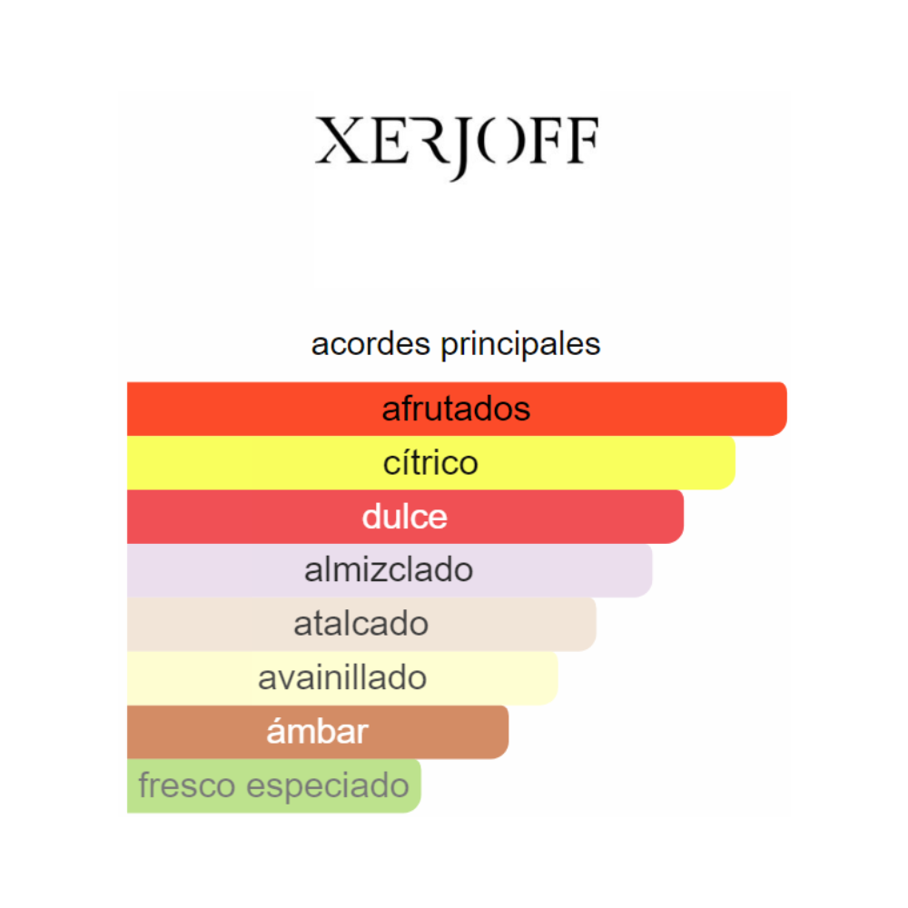 Las Notas de Salida son naranja siciliana, bergamota de Calabria y limón siciliano (lima siciliana); la Nota de Corazón es frutas; las Notas de Fondo son almizcle blanco, vainilla de Madagascar y ámbar.