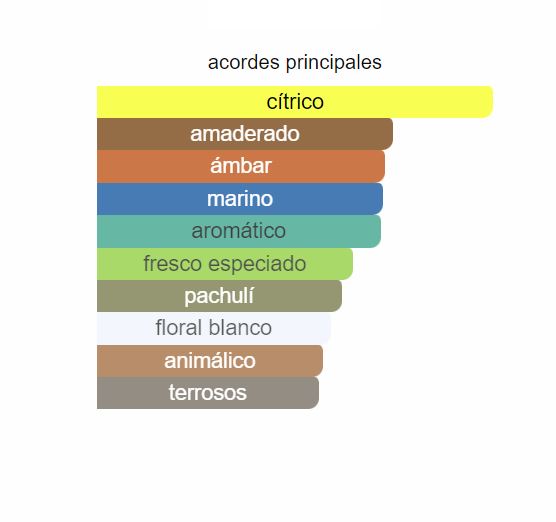 Notas de Salida: 🌊 Notas Marinas, Toronja (Pomelo) 🍊 y Mandarina. Notas de Corazón: ❤️ Laureles y Jazmín. Notas de Base: 🪵 Ámbar Gris, Pachulí, Madera de Gaiac y Musgo.