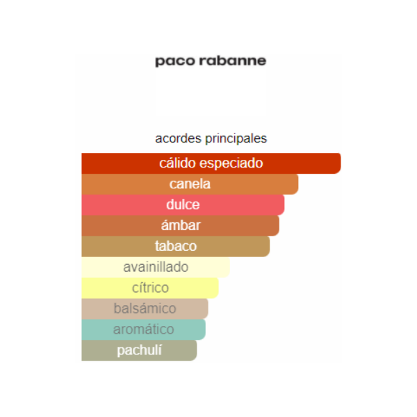 Notas de Salida: 🍊 Canela y Mandarina Roja. Notas de Corazón: ❤️ Tabaco 🚬 y Mirra. Notas de Base: 🍦 Haba Tonka y Pachulí.