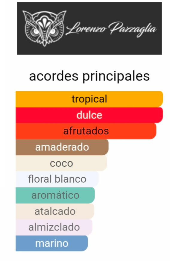 🌟 Notas de salida: mango, piña, coco, bergamota, ron blanco.